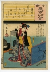 天保3年(1832)に刊行された『保永堂版 東海道五拾三次 』は、 広重 の浮世絵師としての地位を確立した作品だが、その後 広重 は20点もの東海道シリーズを描いている。保永堂版のおよそ23年後の安政2年(1855)、 広重 が59歳の時に最後の東海道シリーズとして制作したのが『五十三次名所図会』(一般に竪絵東海道)である。それまでの東海道シリーズとは異なり、大判という大きさの紙を縦に使っており、縦長の画面空間において 広重 は俯瞰構図を多用したほか、中には最晩年の代表作「 名所江戸百景 」へと繋がるような「近像拡大図」(近景のモティーフを大きく描く手法)の萌芽も見られる。