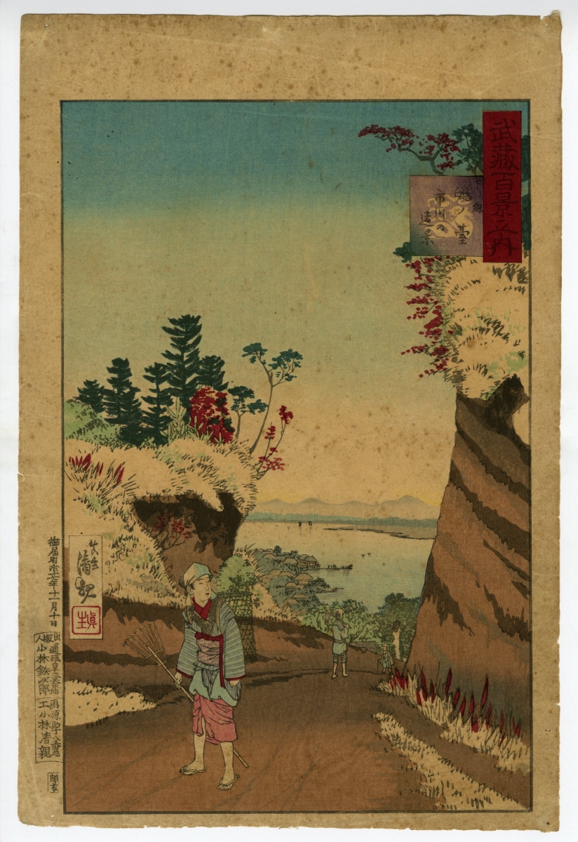小林清親 武蔵百景之内 下総鴻ノ台 市川の遠景