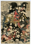 国芳(くによし) 寛政9年(1797)〜文久元年(1861)浮世絵師。画号に一勇斎・採芳舎・朝桜楼などがある。江戸日本橋にて染物屋の子として生まれたが、文化末年から 初代豊国 の門人となり、 役者絵 ・挿絵などを描き始める。文政末年より描き始めた錦絵「通俗水滸伝豪傑」シリーズで人気が急騰。以後「 武者絵 の 国芳 」として評判を得る。柴田是真にも学んだとされ、天保期には 洋風 風景画 も手がけるようになり、また 戯画 の豊かな発想から幕末の奇才と呼ばれる。