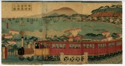 国政W (国貞V)(くにまさ W) 嘉永元年(1848)〜大正9年(1920)浮世絵師。梅朝楼・梅堂・一寿斎などの号がある。はじめ 三代豊国 に学び、その没後、四代豊国(二代 国貞 )の門人となる。明治22年(1889)に三代 国貞 を襲名。三枚続の 役者絵 や開化絵を多く手がけた。